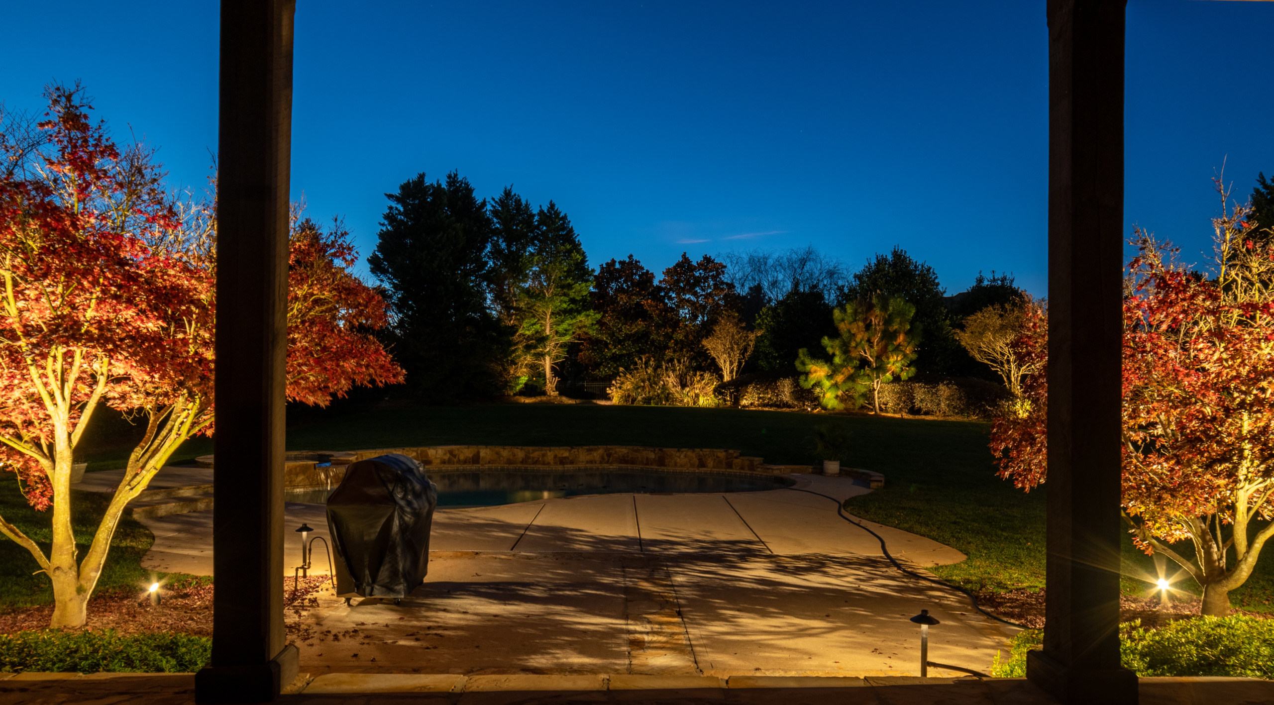 After careful consideration and testing many products, I narrowed it down to a few of the best fixtures, connectors, and cable available to the professional landscape lighting industry. This selection process involved rigorous testing and evaluation to ensure only the highest quality materials would be used in my installations. I am so fortunate to have clients who appreciate my lighting skills in the Raleigh and Eastern NC areas. My unique approach sets me apart: I look at architectural features and gardens and landscapes differently than others and view the depth and dimensions when looking at a potential lighting project. I see things differently and look at the entire scene to create not only a stunning scene when the clients drive up to their residence in the evenings, but also to create little vignettes through windows and views from their home offices, kitchens, dens, bedrooms, and patios.